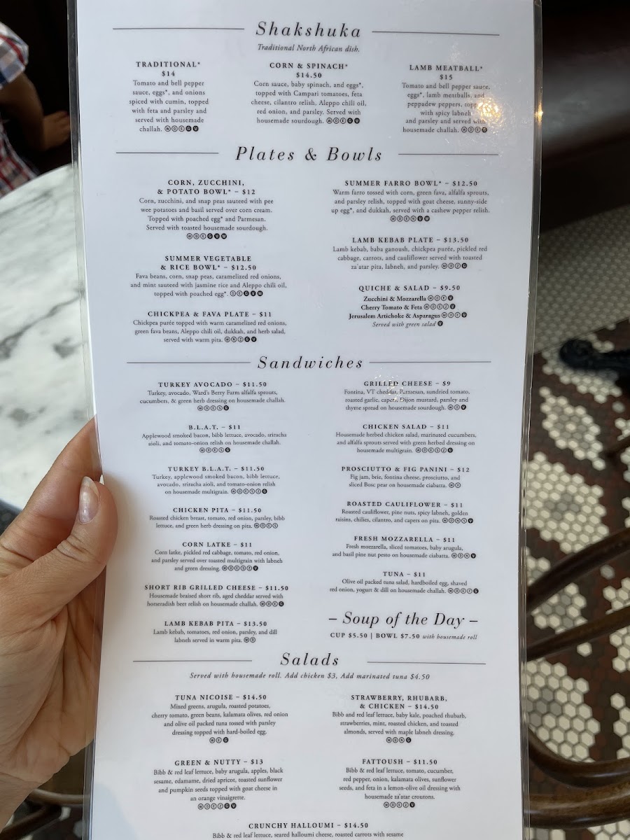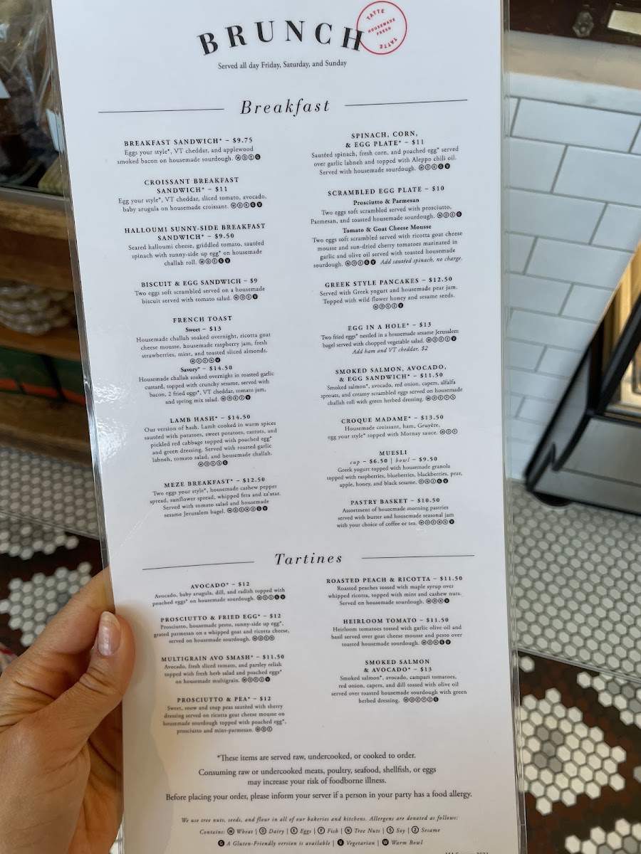 Sauteed spinach, fresh corn, and poached egg served over garlic labneh and topped with Aleppo chili oil. Served with housemade sourdough. (670 cal, Contains: Wheat, Dairy, Egg)